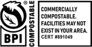 Independently verified by the Biodegradable Products Institute (BPI) to be industrially compostable in compliance with ASTM D6400.
