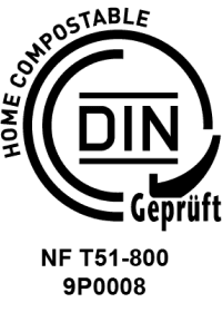 Independently verified by Din Certco to be home compostable in compliance with NF T51-800